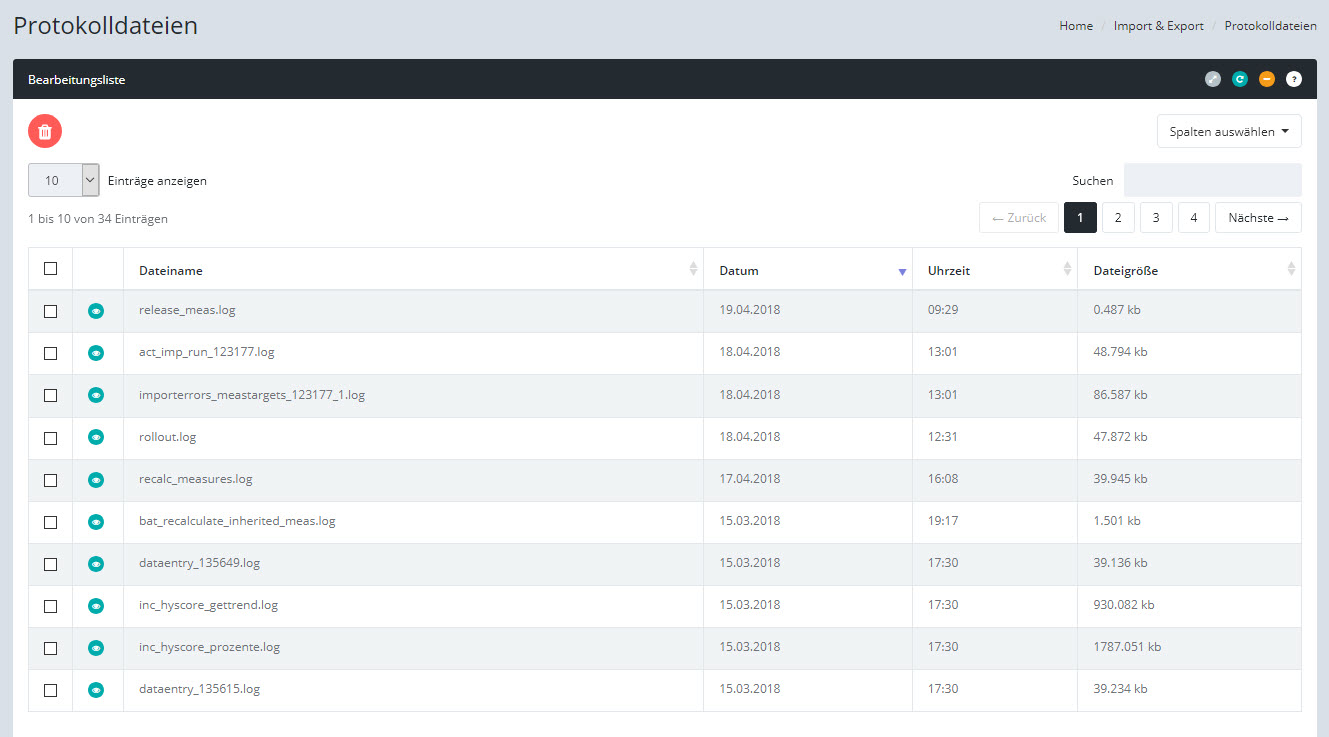 Mit der Anwendung "Protokolldateien" können Sie diese Protokolle ansehen und löschen.
