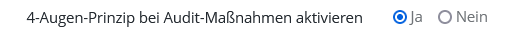 Bei Maßnahmen aus Audits kann man jetzt optional mandantenweit ein 4-Augen-Prinzip einschalten: Wenn der Maßnahmenempfänger die Maßnahme als beendet meldet, wird automatisch ein Prüfer benachrichtigt der dann prüfen muss, ob die Maßnahme tatsächlich umgesetzt und das Problem behoben wurde.