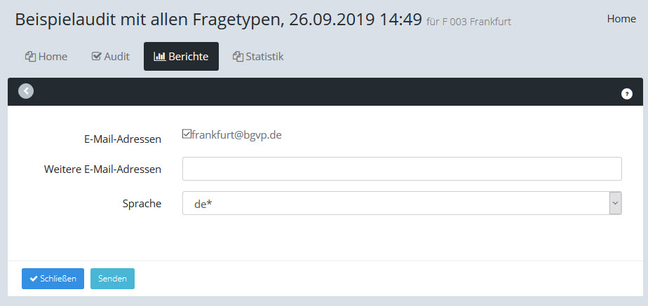 •Die Emailadressen, die bei der Auditdefinition im Feld "Email-Empfänger für Statusbericht" eingetragen sind
