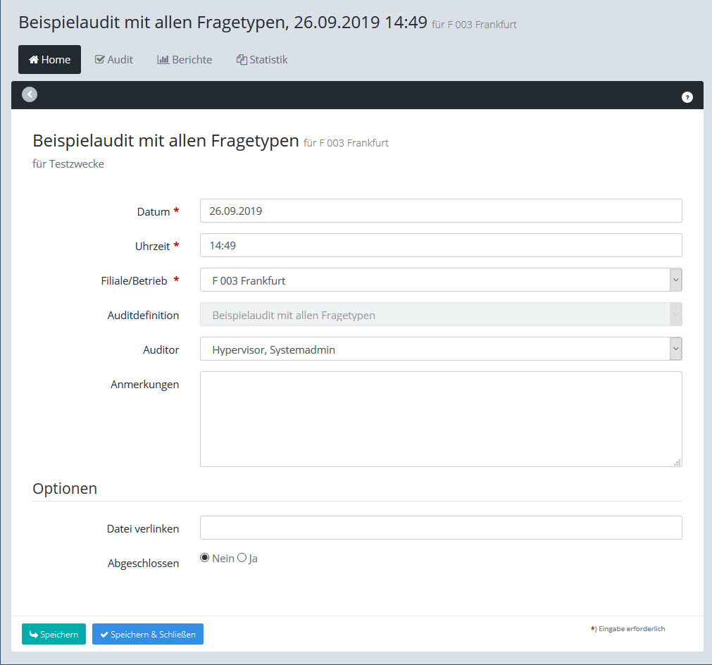 Das Datum, an dem das Audit durchgeführt wurde |