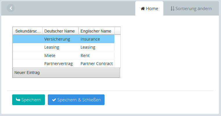 5.Klicken Sie am Ende Ihrer Eingaben auf [Speichern] um die Eingaben zu speichern. [Speichern & Schließen] speichert die Änderungen und schließt dann das Fenster. Schließen Sie das Fenster, um evtl. Änderungen nicht zu speichern.