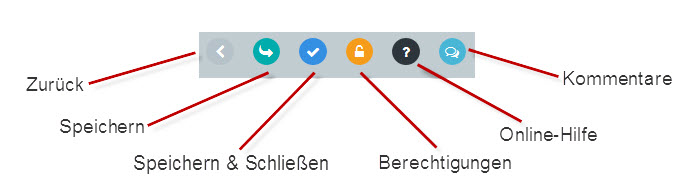 Über diese Schaltfläche gehen Sie zurück zur vorherigen Anwendungsseite, in der Regel zur Bearbeitungsliste. Achtung: Wenn sie den Bearbeitungsbildschirm mittels Zurück-Button verlassen, gehen alle nicht gespeicherten Änderungen verloren! |