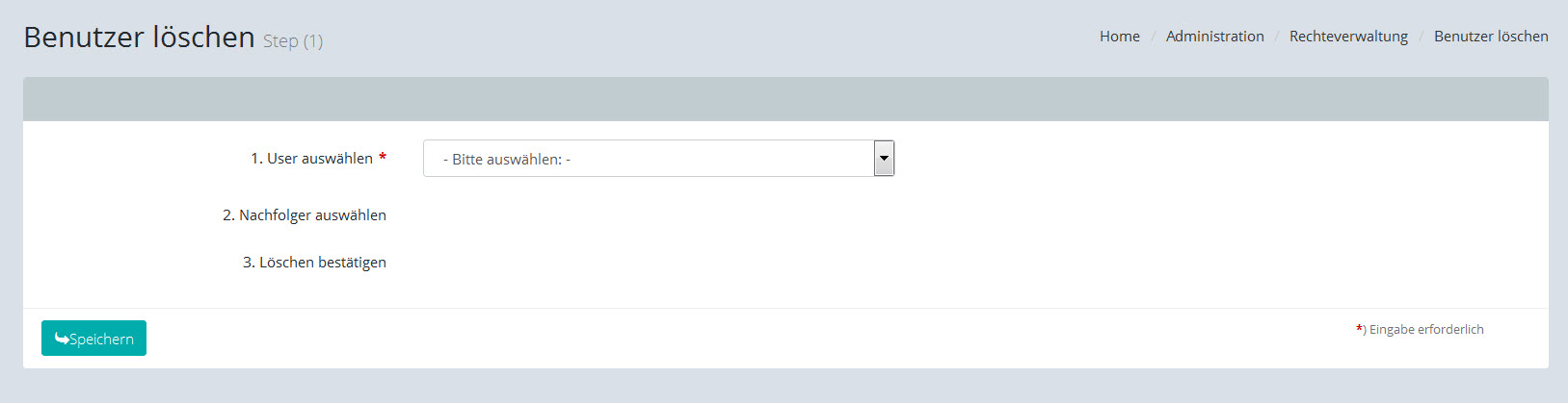 Menüpfad: Administration / Rechteverwaltung / Benutzer löschen
