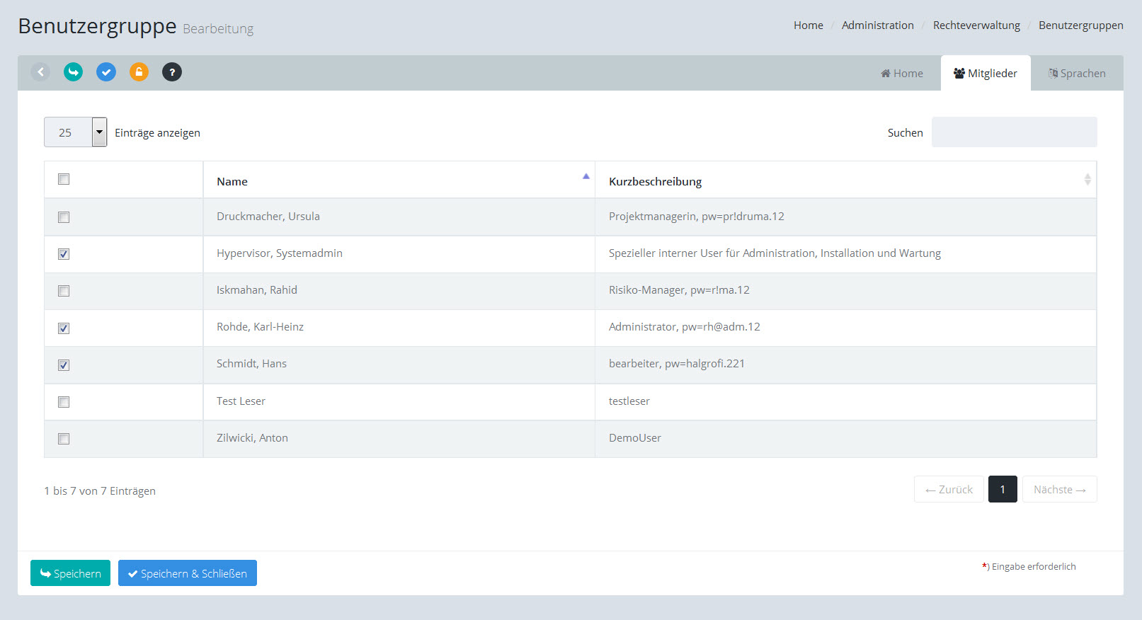 Markieren Sie die jeweiligen Benutzer, um diese der Benutzergruppe hinzuzufügen und drücken Sie auf [Speichern], um die Änderungen zu übernehmen.