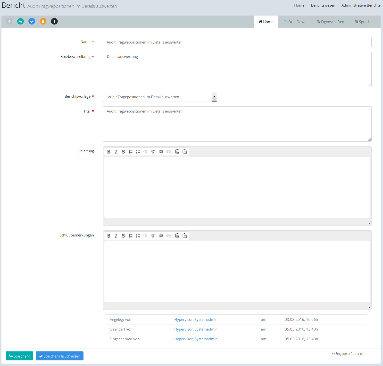 [Speichern & Schließen] speichert die Änderungen und kehrt automatisch in die Liste zurück.