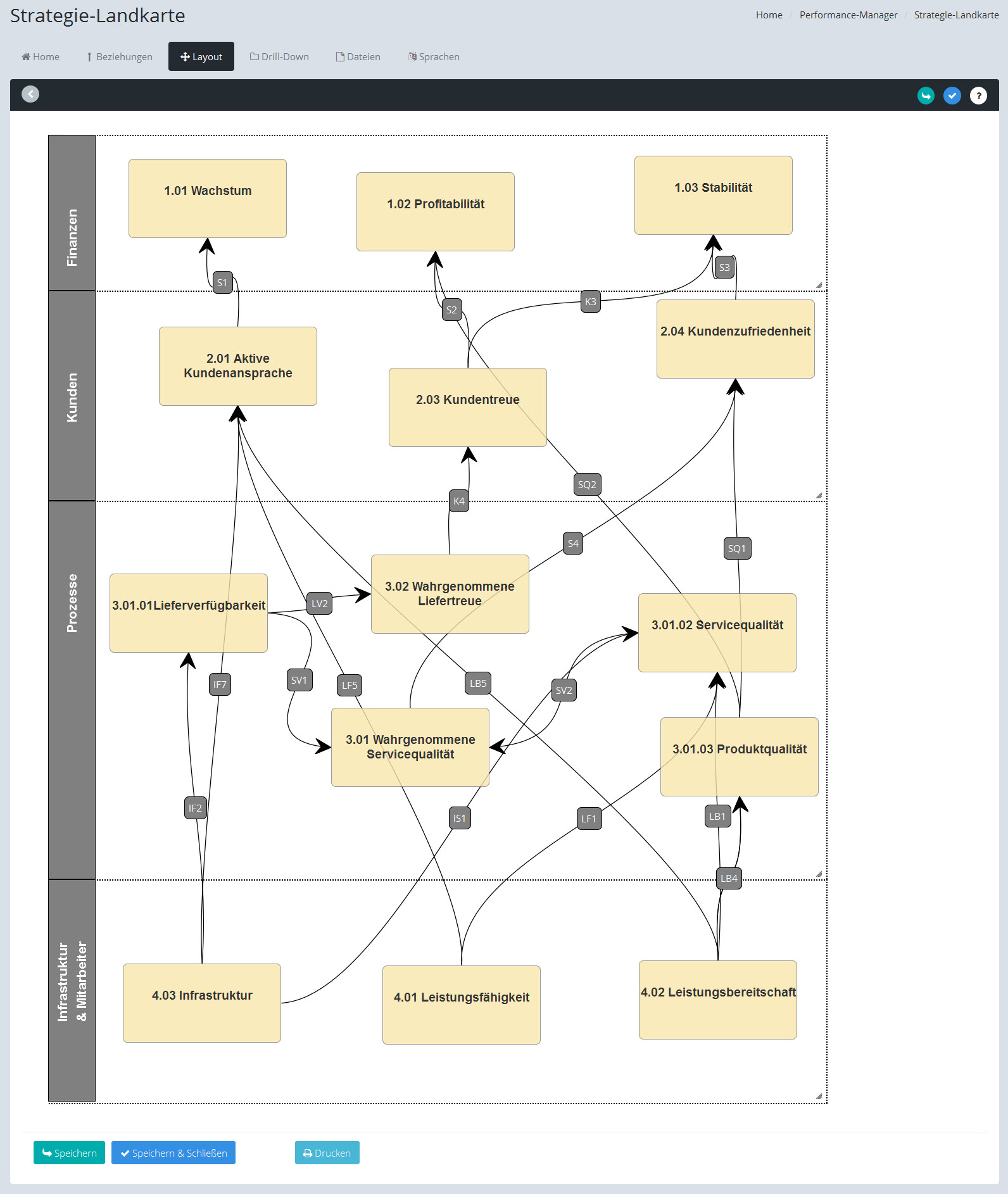 Wenn Sie neue Ursache-Wirkungsbeziehungen oder neue Ziele definiert haben, müssen Sie die Strategie-Landkarte aktualisieren.