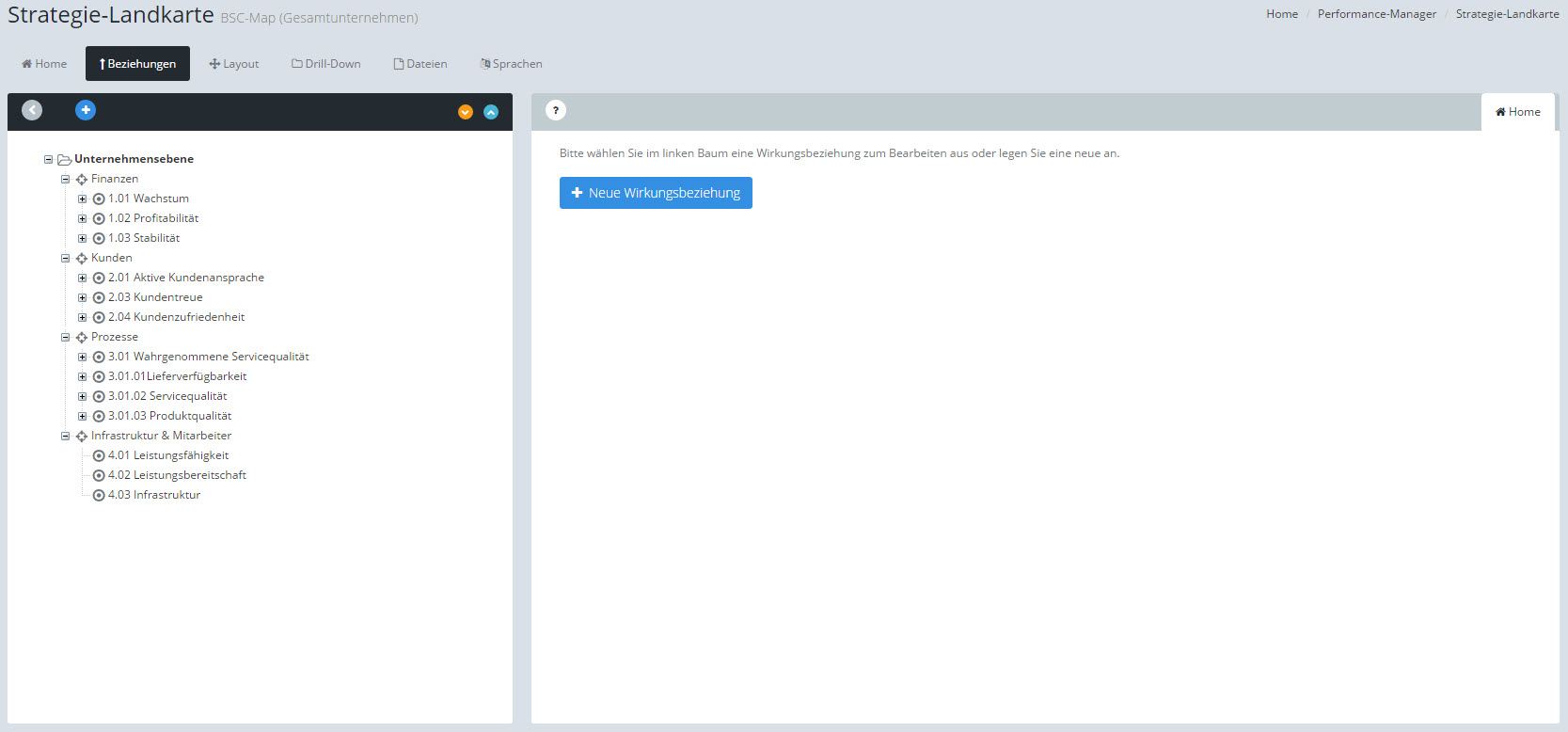 Strategie-Landkarte: Ansicht für Wirkungsbeziehungen