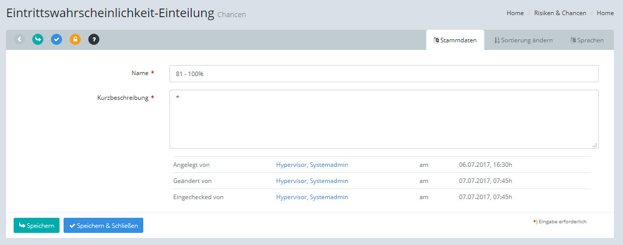 Navigation:  Bearbeiterhandbuch > Anwendungen > Risiken- & Chancen > Stammdaten & Einstellungen > Eintrittswahrscheinlichkeits-Einteilung (Chancen) >