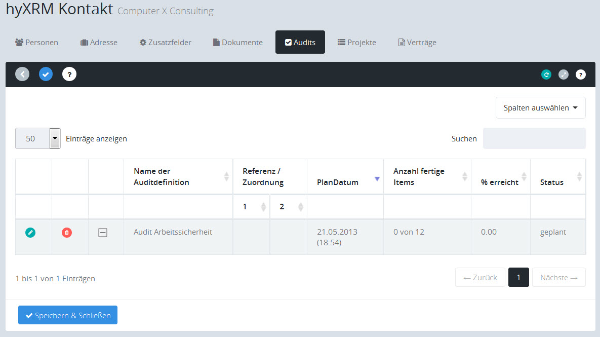 Hinweis: Diese Registerkarte ist nur aktiv, wenn Sie das Auditmodul erworben haben.