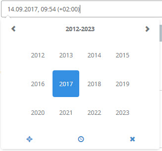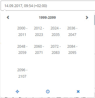 Mit dem Kalender können Sie Datumswerte innerhalb des aktuellen Jahrhunderts sehr komfortabel auswählen. Datumswerte außerhalb dieses Zeitraums können Sie am Einfachsten direkt im Textfeld eingeben.