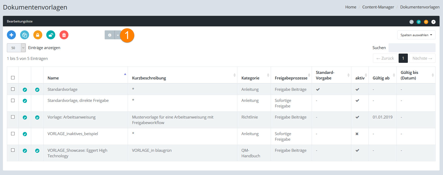 Legen Sie hier eine neue Dokumentenvorlage an oder wählen Sie eine vorhandene zur Bearbeitung aus.