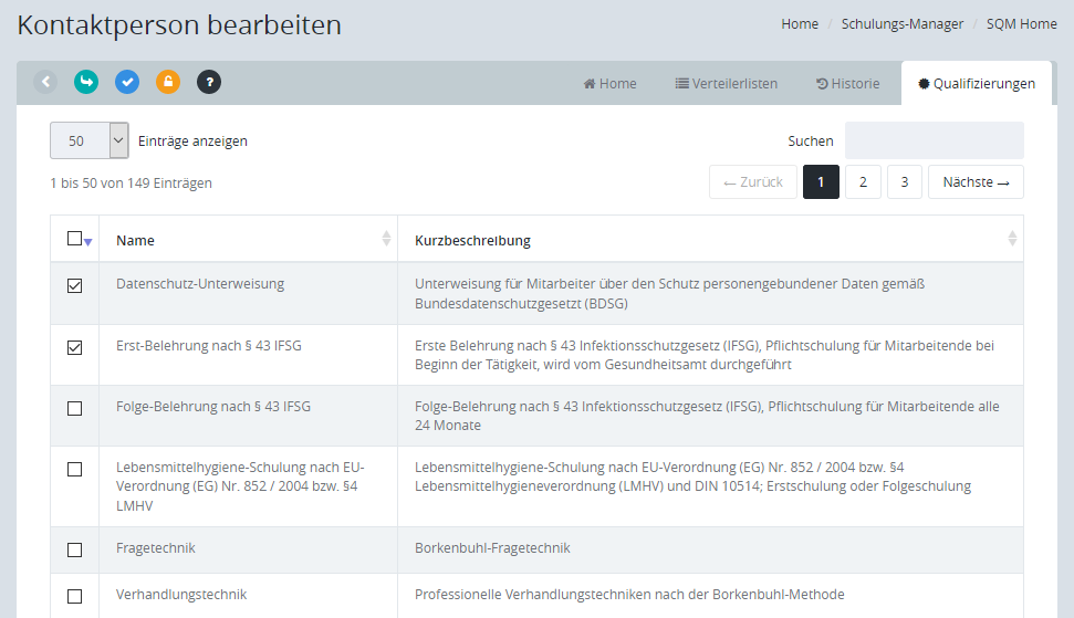 Diese Zuordnung der Qualifizierungen zum Dozenten ist wichtig, damit Sie später bei den Schulungen geeignete Dozenten auswählen können.