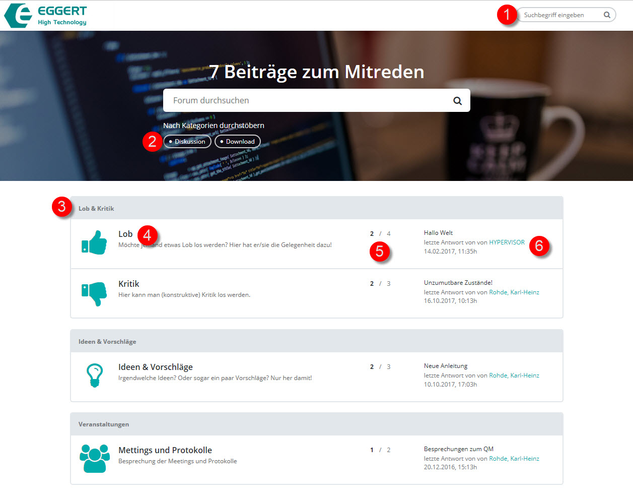 Klicken Sie auf ein Forum (4), um zur Forums-Startseite zu gelangen.