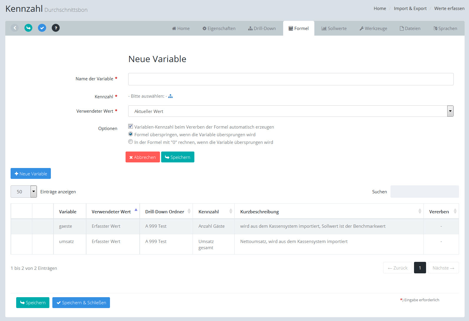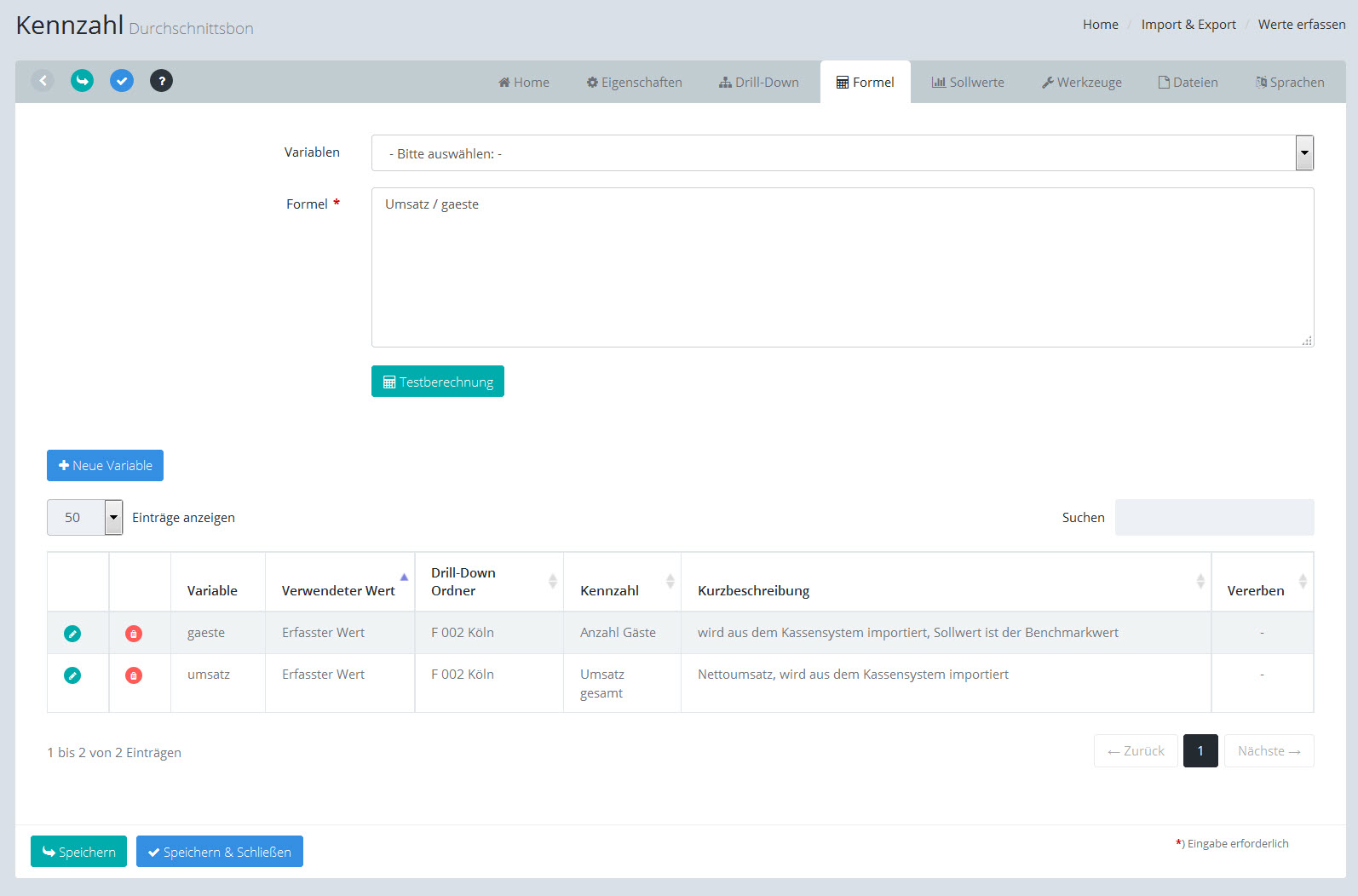Kennzahl: Variable bearbeiten