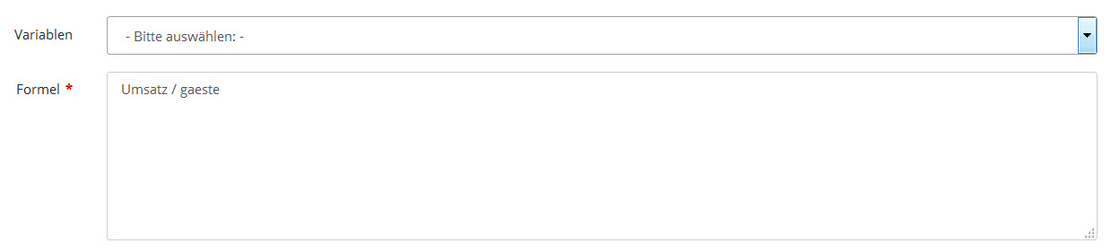 Mithilfe von Formeln können Sie die Werte einer Kennzahl aus den Werten anderer Kennzahlen berechnen lassen. Neben dem aktuellen Wert können dabei auch Werte von Vorperioden, Mittelwerte, etc. in der Berechnung verwendet werden. Deshalb ist es erforderlich, zunächst die Variablen zu definieren, die Sie in der Formel verwenden wollen.