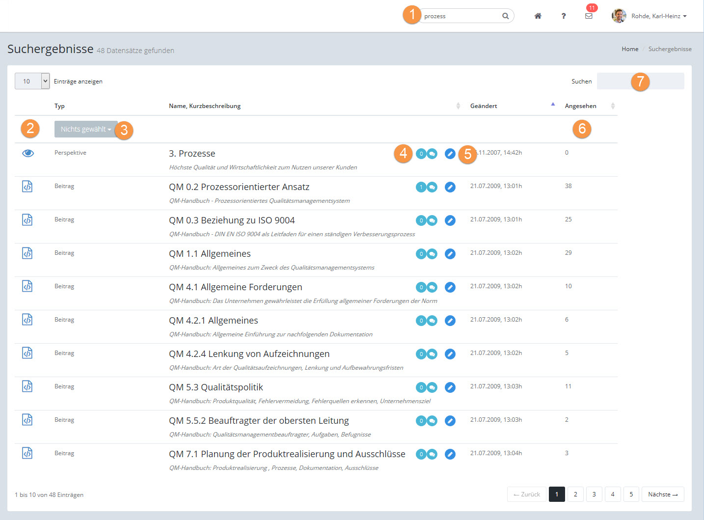 7.Zweites Suchfeld für die Echtzeitsuche innerhalb der Trefferliste, um das Suchergebnis enger einzugrenzen