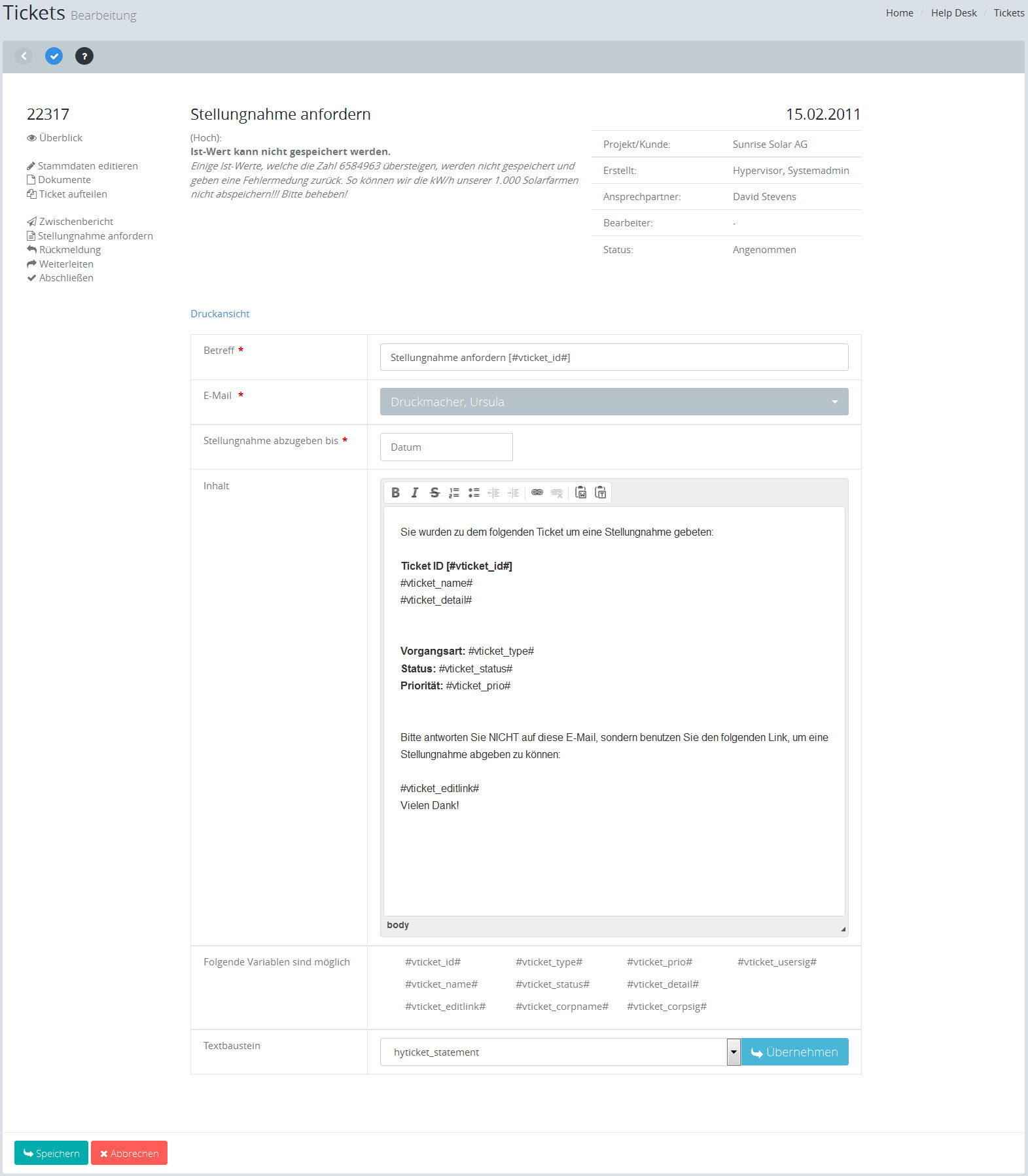 Tickets: Stellungnahme anfordern