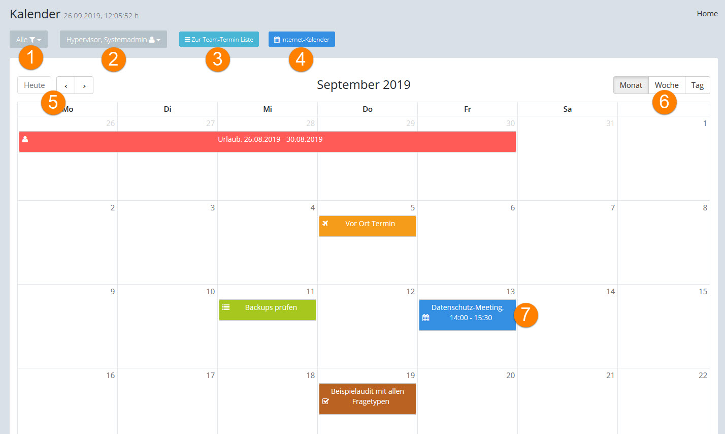 7.Beispiel für einen Kalendereintrag. Hinweis: Termine von anderen, die ein Benutzer nur lesen darf, aber nicht bearbeiten kann, erscheinen in grau, damit man sie besser von den eigenen Terminen unterscheiden kann.
