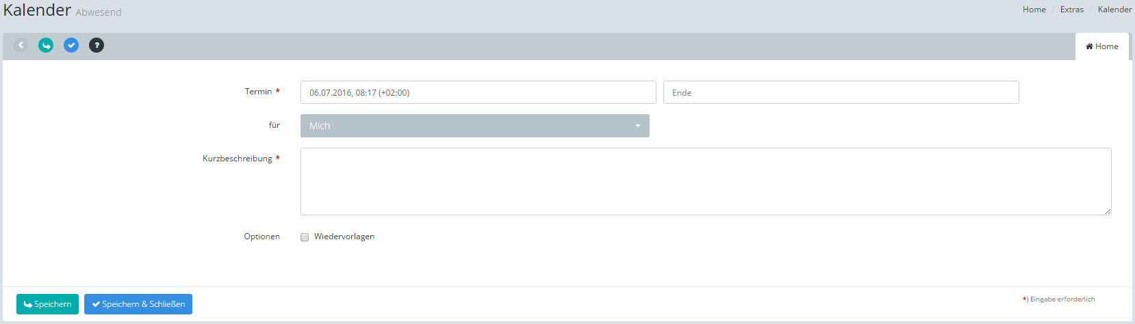 Kalender: Ein neuen Abwesenheitsvermerk eintragen