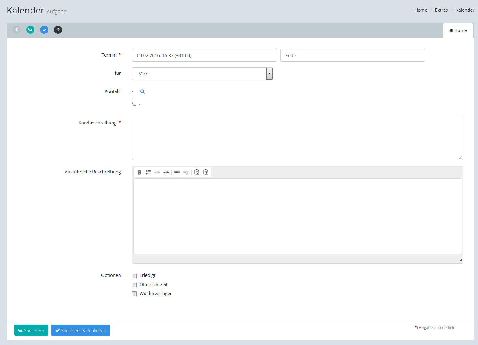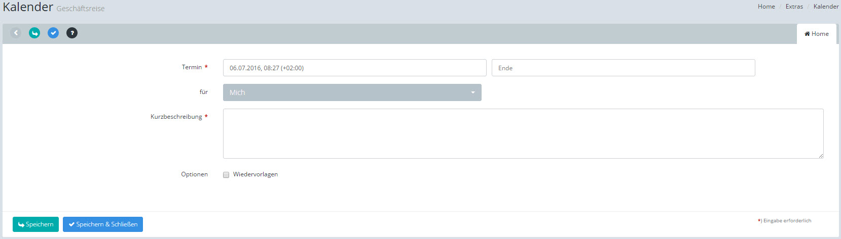 [Speichern & Schließen] übernimmt die gesamten Daten und Sie gelangen wieder zum Kalender.