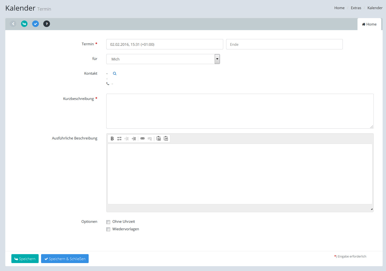 Kalender: Neuen Eintrag vornehmen