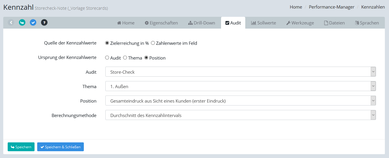 Hinweis: Der Kennzahlwert wird erst beim Abschließen eines Audits berechnet. Es werden nur abgeschlossene Audits berücksichtigt! |