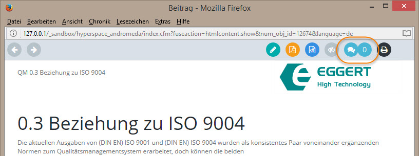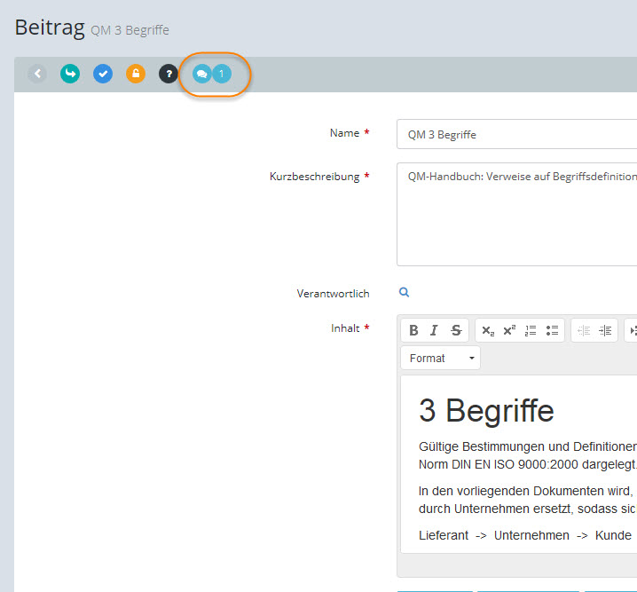 Die Bearbeiter und Verantwortlichen eines Objektes können direkt im Bearbeitungsbildschirm auf die Kommentare zu diesem Objekt zugreifen: