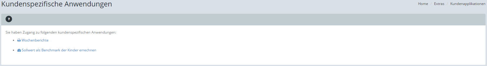 Falls kundenspezifische Anwendungen installiert sind, erscheint auf dieser Seite ein entsprechendes Menü: