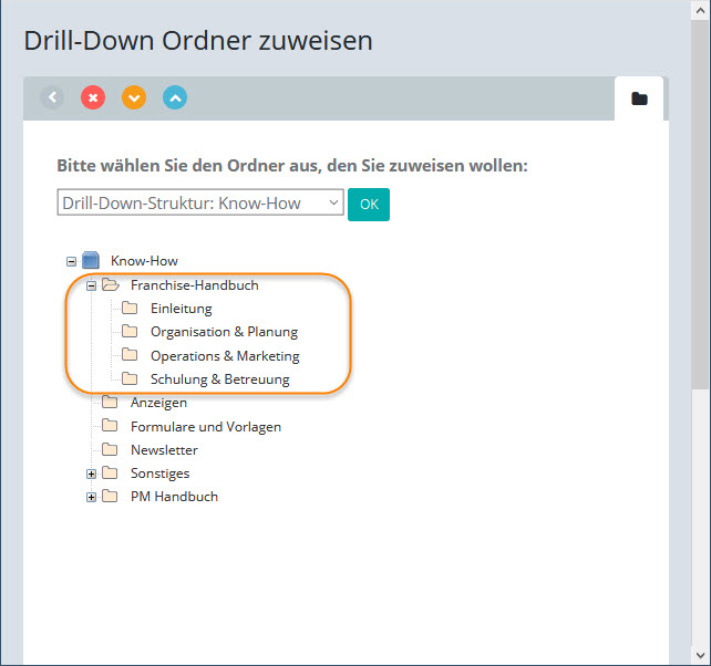 Der Inhalt der Ordners zeigt alle Dateien an, die über das Drill-Down dem Ordner zugewiesen sind.