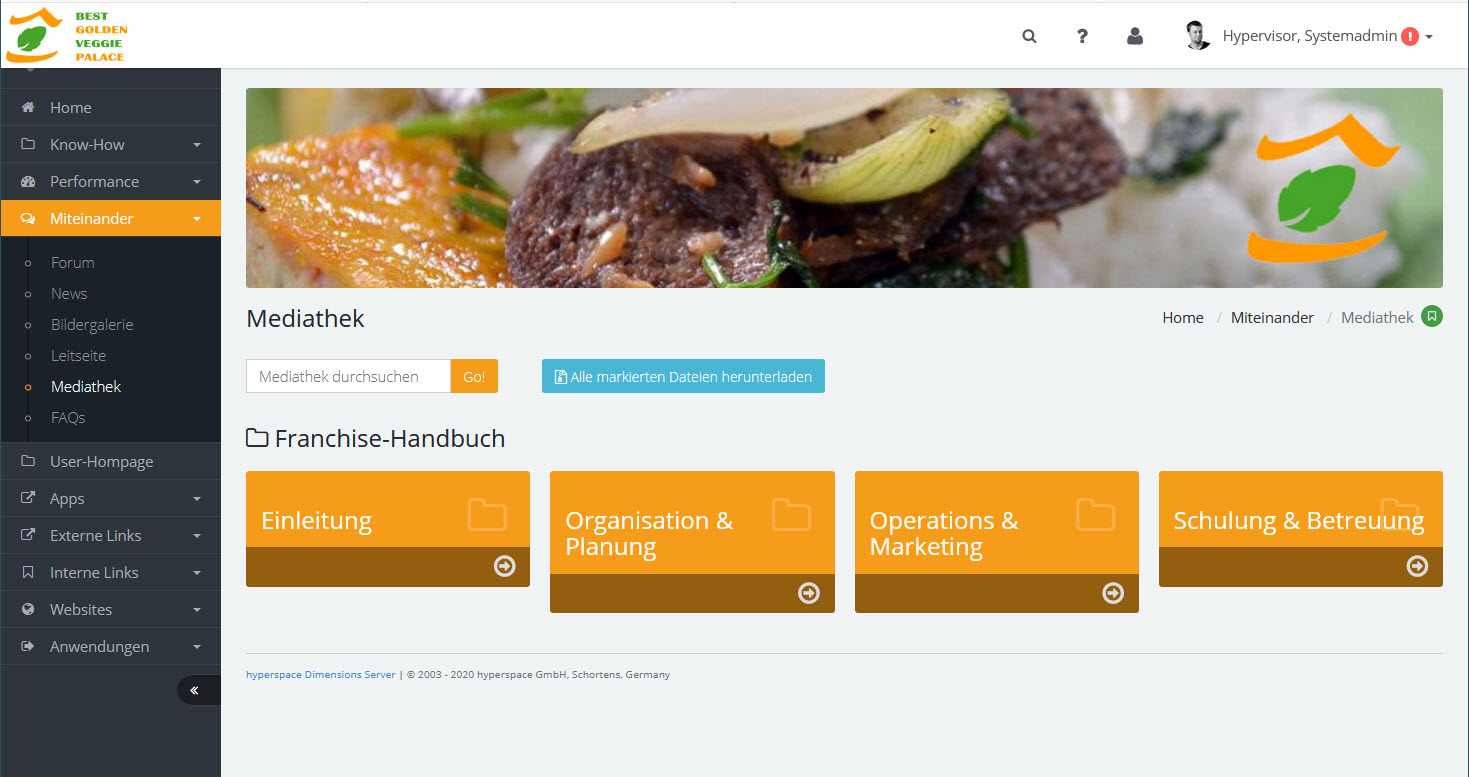 Die Unterordner des gewählten Elternordners werden auf der Startseite der Mediathek als Kacheln angezeigt. Klick auf die Kachel öffnet den Ordnerinhalt: