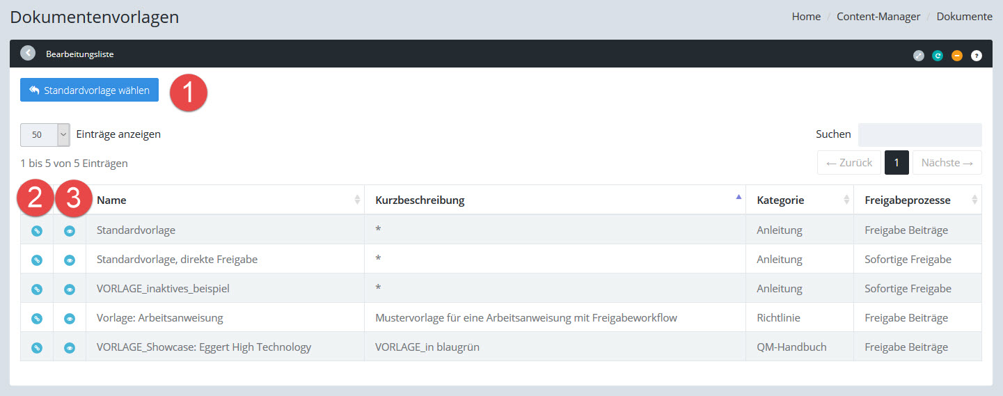3.Vorschaubuttons, zeigen eine PDF-Vorschau der Dokumentenvorlage an