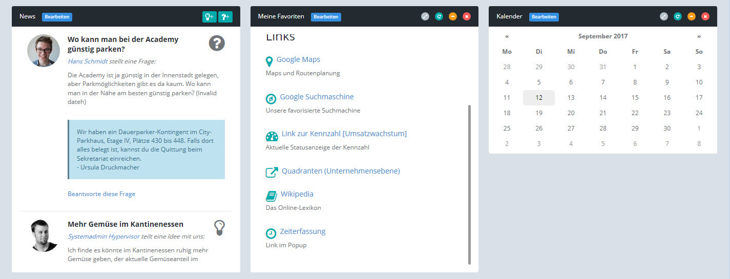 •Weiterführender Link: Aktivieren von Fragen und Ideen im Newsbereich bei den Mandanteneinstellungen