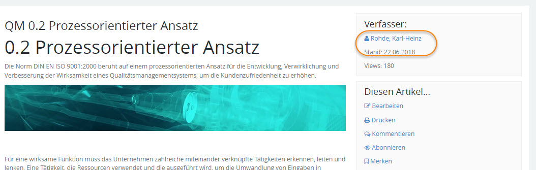 Der Name des verantwortlichen Benutzers oder Verfassers wird an vielen Stellen der Anwendung angezeigt und ist mit der zugehörigen Profilseite verlinkt.