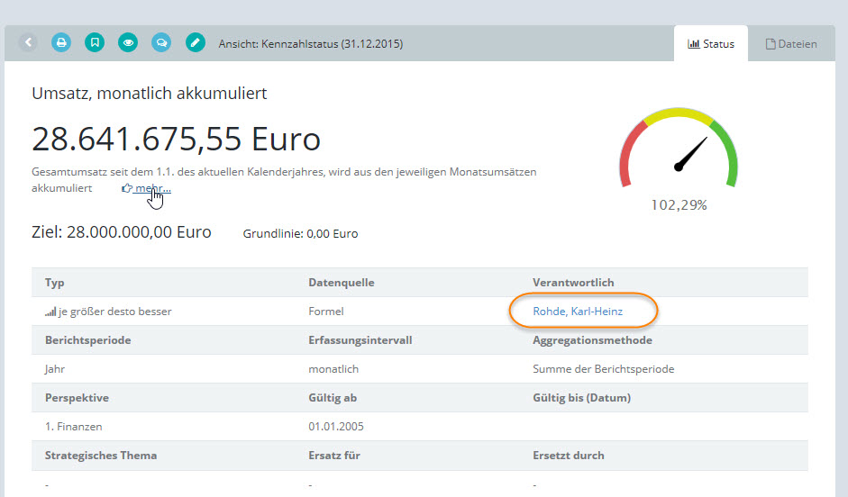 Zum Beispiel in der Leseansicht einer Kennzahl: