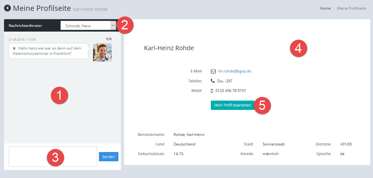 Die Profilseite kann außerdem für den Austausch persönlicher Nachrichten genutzt werden, falls der Benutzer diese Funktion aktiviert hat.