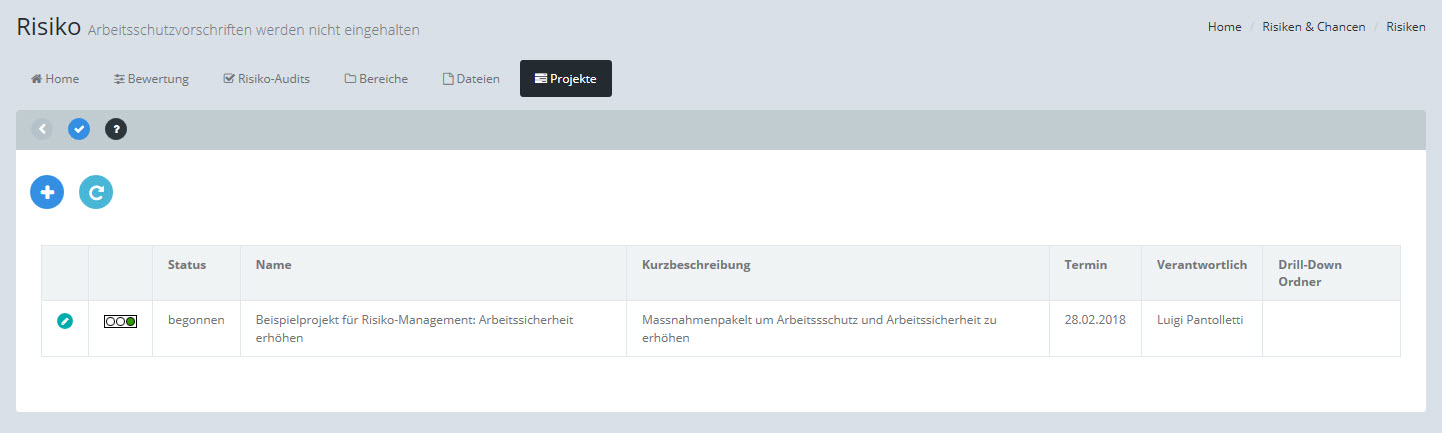 Unter "Projekte" können Sie Projekte für das aktuelle Risiko anlegen oder angelegte Projekte bearbeiten.