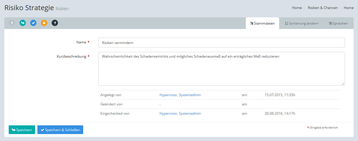 Risiko-Strategien: Stammdaten