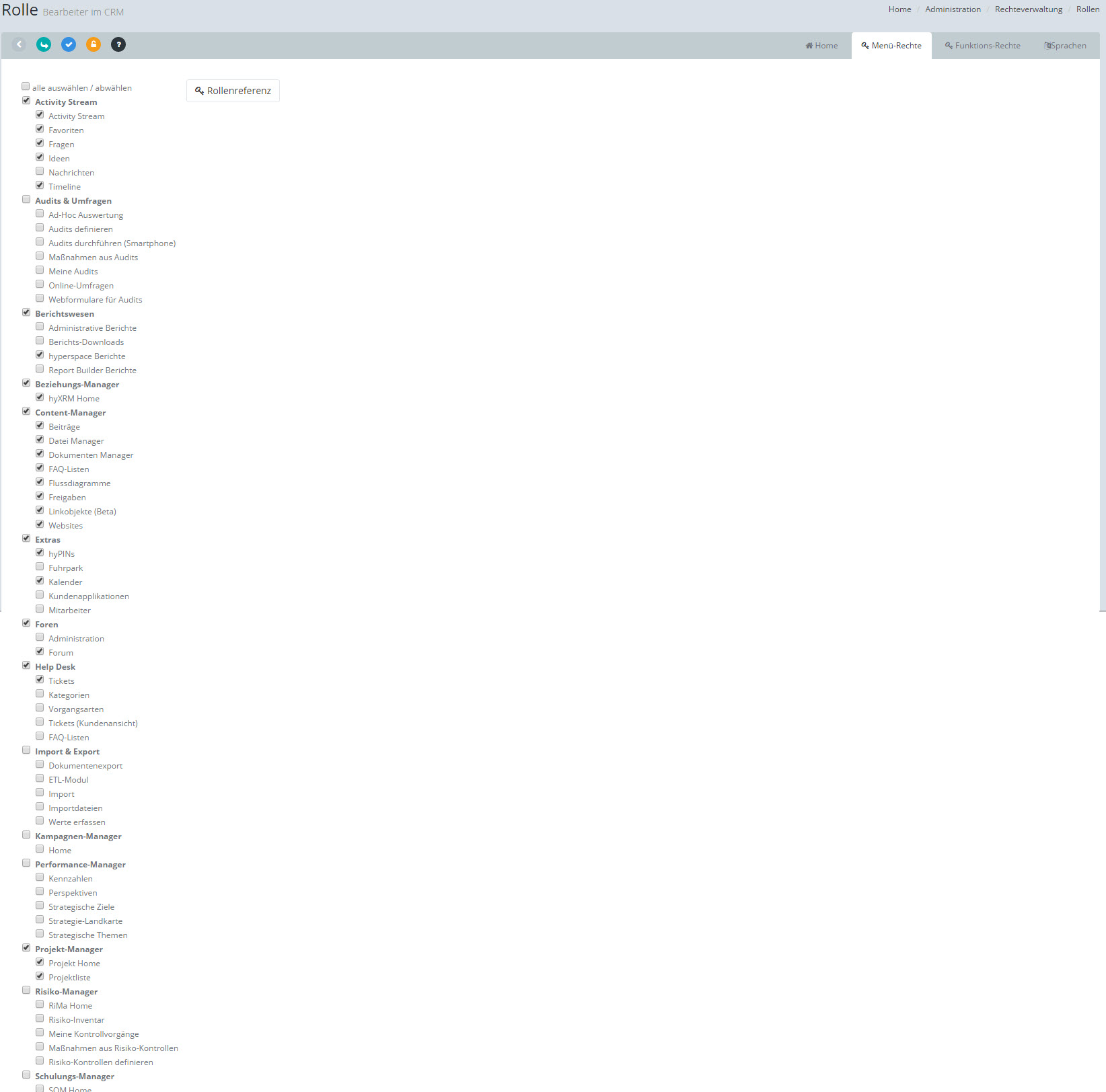 Aktivieren Sie alle Menüpunkte, die für diese Rolle angezeigt werden sollen.