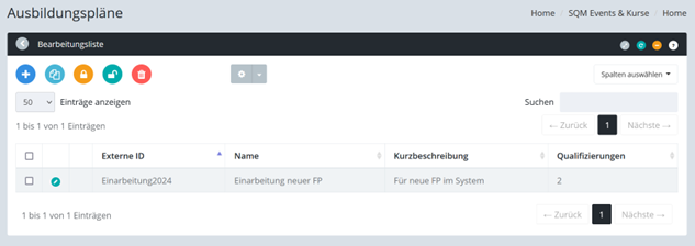 Ein Ausbildungsplan legt die Qualifizierungen und die Reihenfolge fest, die im Rahmen dieses Plans erworben werden sollen.