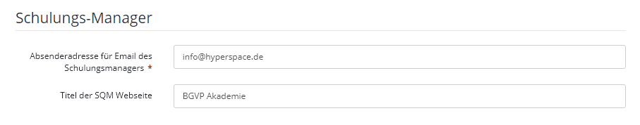 Die hier angegebene E-Mail-Adresse wird als Absender bei allen automatisch generierten E-Mails des Schulungsmanagers verwendet