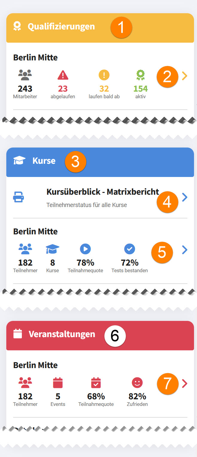 2.Kurzübersicht des aktuellen Qualifizierungsstatus für diesen Store, Klick auf diese Zeile springt zur Seite "Qualifizierungsmanagement" des ausgewählten Stores