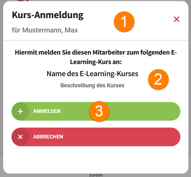 3.Button [Anmelden] meldet den Mitarbeiter für diesen E-Learning-Kurs an.