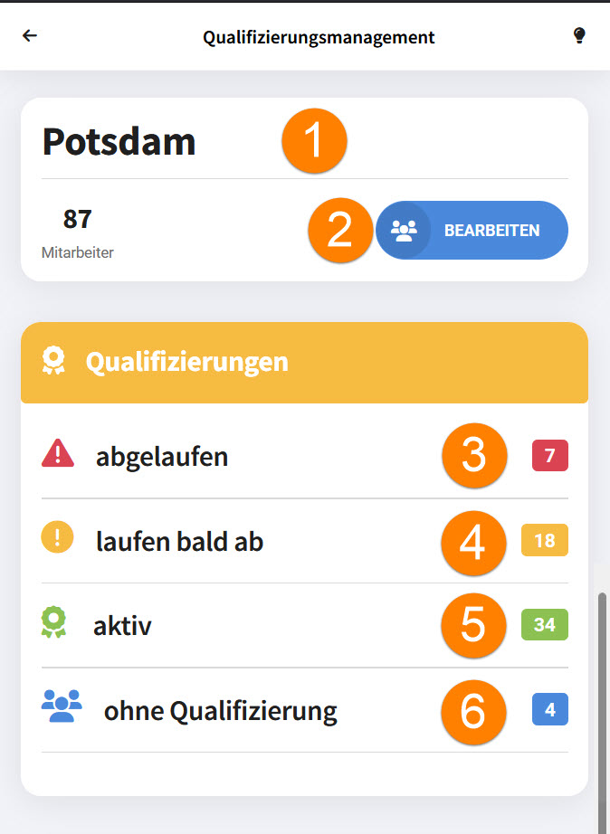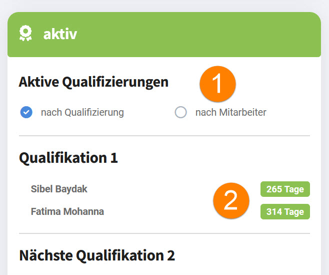 4.Die rechte, kleine Zahl zeigt die Anzahl der abgelaufenen Qualifizierungen dieses Mitarbeiters an