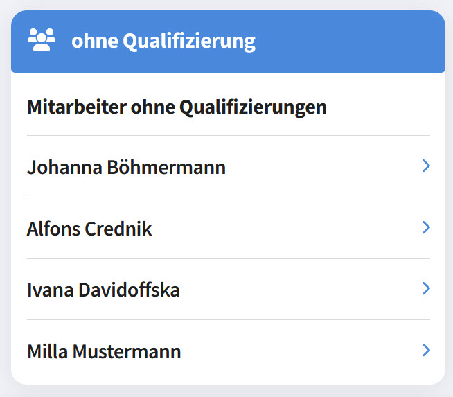 6.zeigt alle Mitarbeiter an, die noch keine Qualifizierung erworben haben (z.B. neue Mitarbeiter)