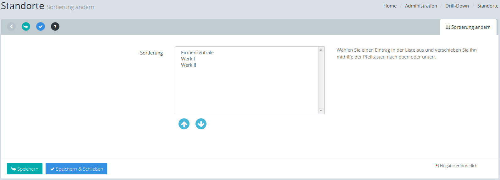 [Speichern & Schließen] speichert die Sortierung und Sie gelangen automatisch zurück zur Bearbeitungsliste.