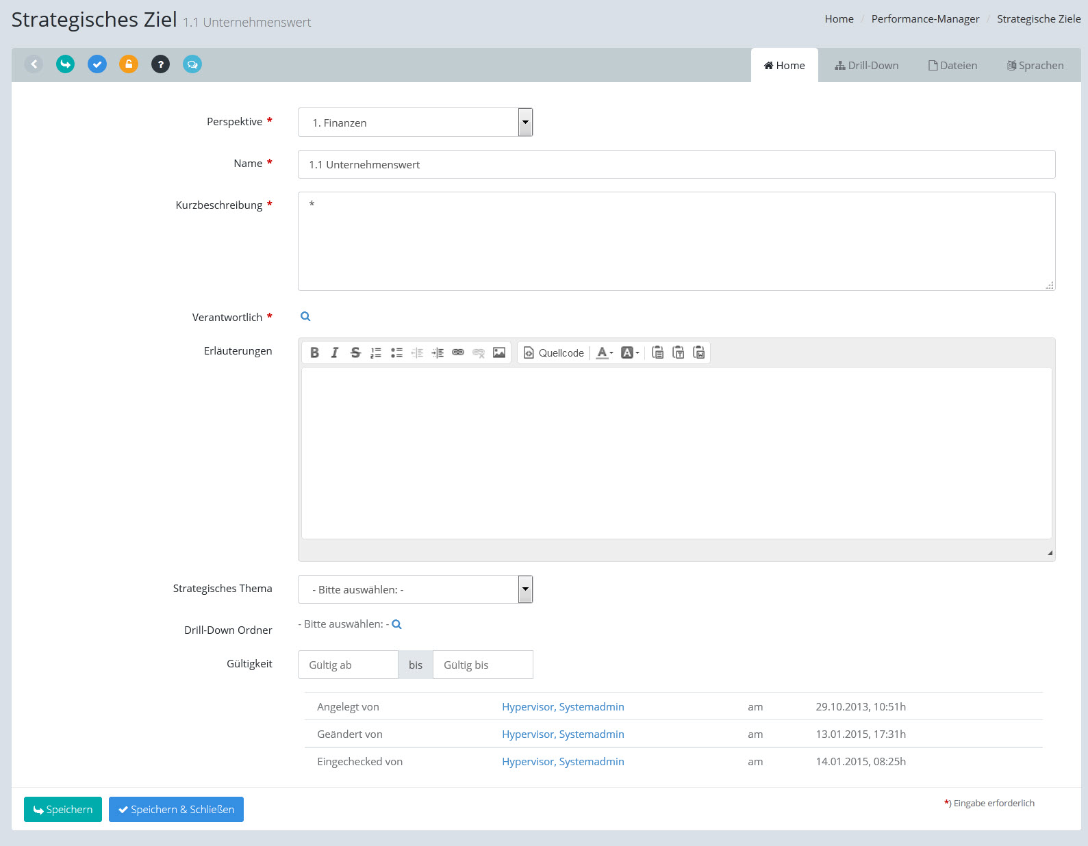 Über das Lupen-Symbol können Sie dem strategischen Ziel eine Organisationseinheit zuordnen. |