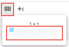 Hier können Sie durch Anklicken der grauen Kästen die Größe der Tabelle festlegen, die erstellt werden soll