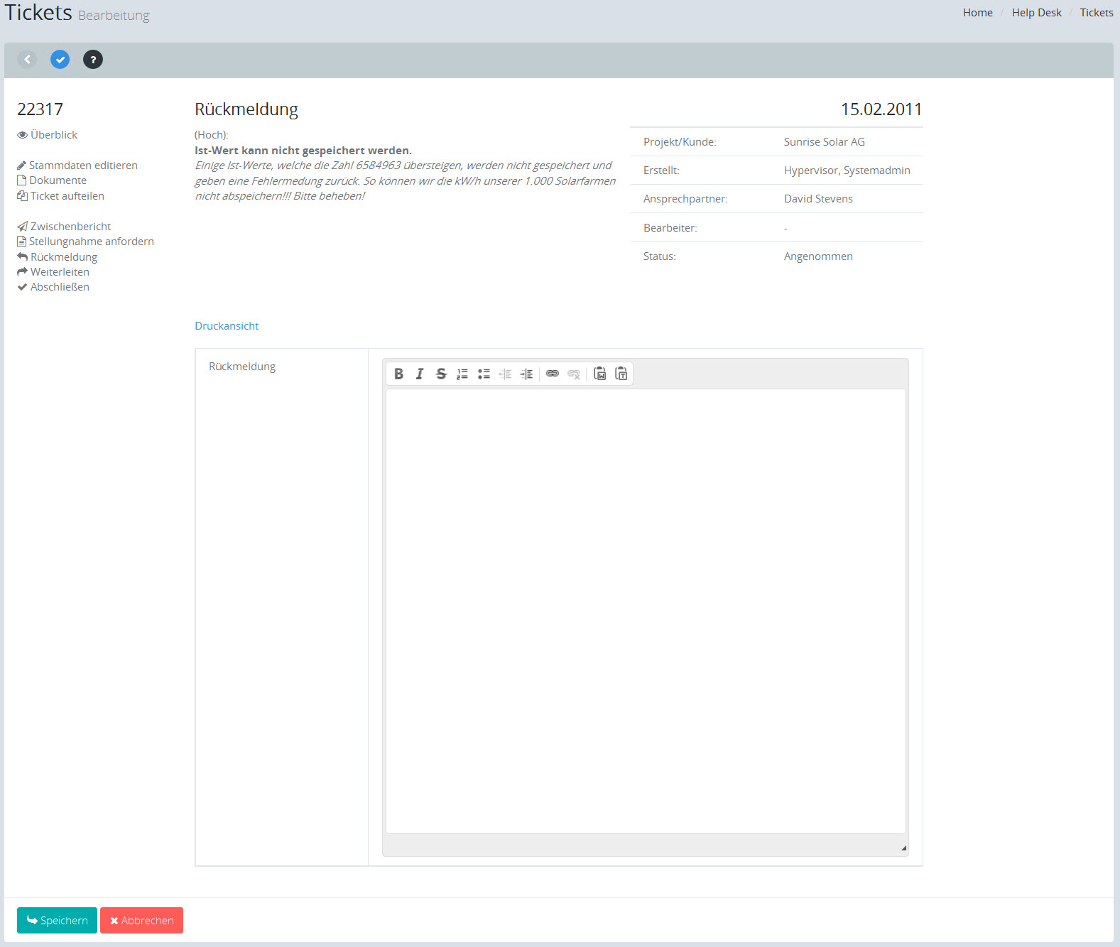Falls die Kontaktperson ihnen eine Rückmeldung geschrieben hat, tragen Sie den Text der Mitteilung hier ein. |