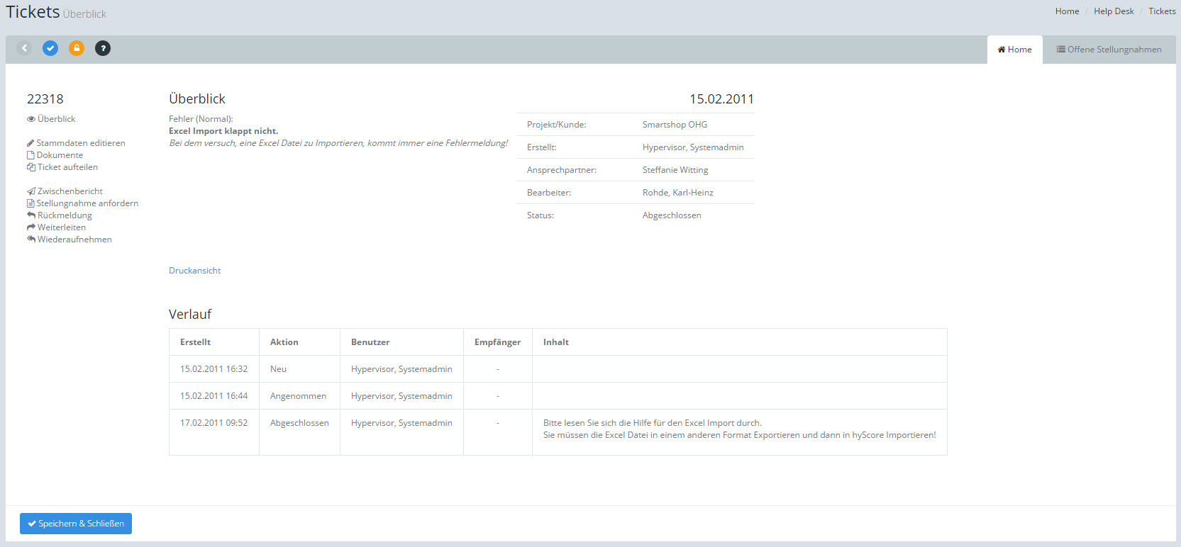 Klick auf "Druckansicht" zeigt alle Informationen des Tickets einschließlich der ausführlichen Erläuterungen in einem neuen Fenster als Druckansicht an.