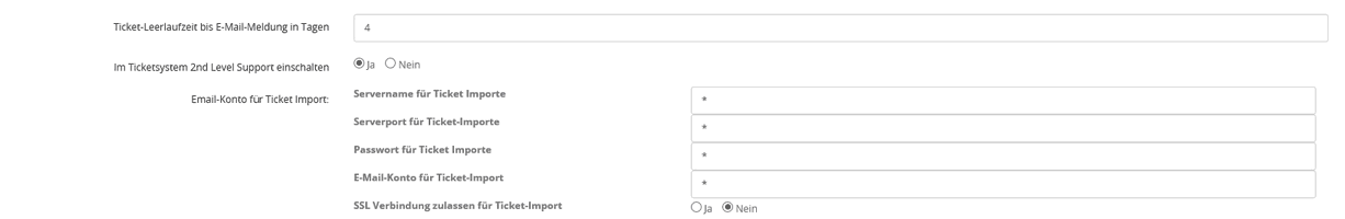 3.Falls Sie Optionen für 2nd Level Support oder das Anlegen von Tickets via Email einschalten möchten, können Sie das auf der Registerkarte „Einstellungen“ tun. Mehr dazu finden Sie im folgenden Absschnitt.
